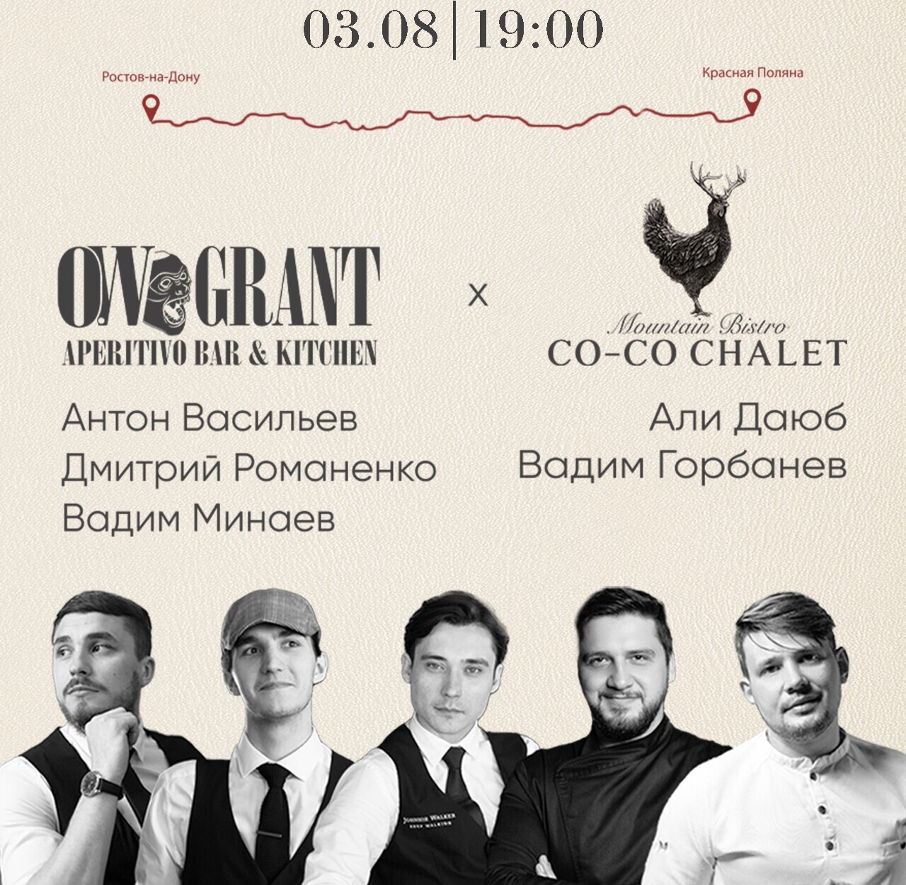 Ресторан Co-Co Chalet — кулинарная жемчужина, расположенная в самом сердце Красной Поляны. Известный своей изысканной кухней и исключительным обслуживанием, это идеальное место, чтобы насладиться гастрономическим праздником. В августе этого года ресторан сотрудничает с баром O.W Grant, чтобы подарить вам незабываемые гастрономические впечатления.